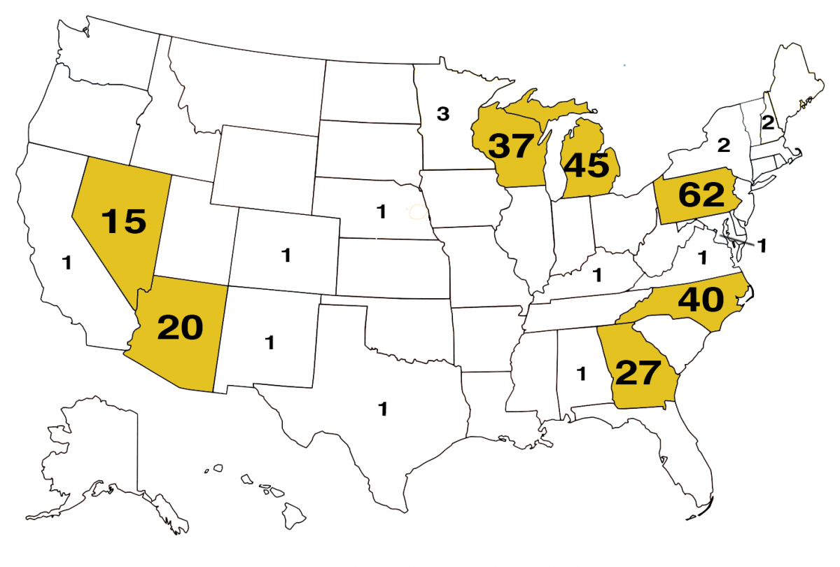 The data for this map was compiled by FairVote. The details of each of the 262 general-election campaign events are shown in FairVote's Tracker.