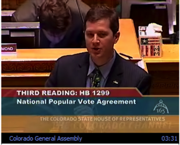 CaptionColorado Representative Andrew Kerr, sponsor of the National Popular Vote bill in Colorado, speaking during House debate on March 17, 2009.