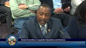 The late Assemblyman Tyrone Thompson (sponsor of AB186) testifies before Senate Legislative Operations and Elections Committee on April 24, 2019