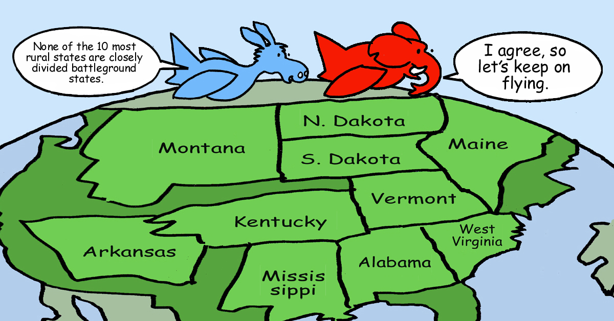 In short, rural states are almost entirely ignored by the current state-by-state winner-take-all method of awarding electoral votes.